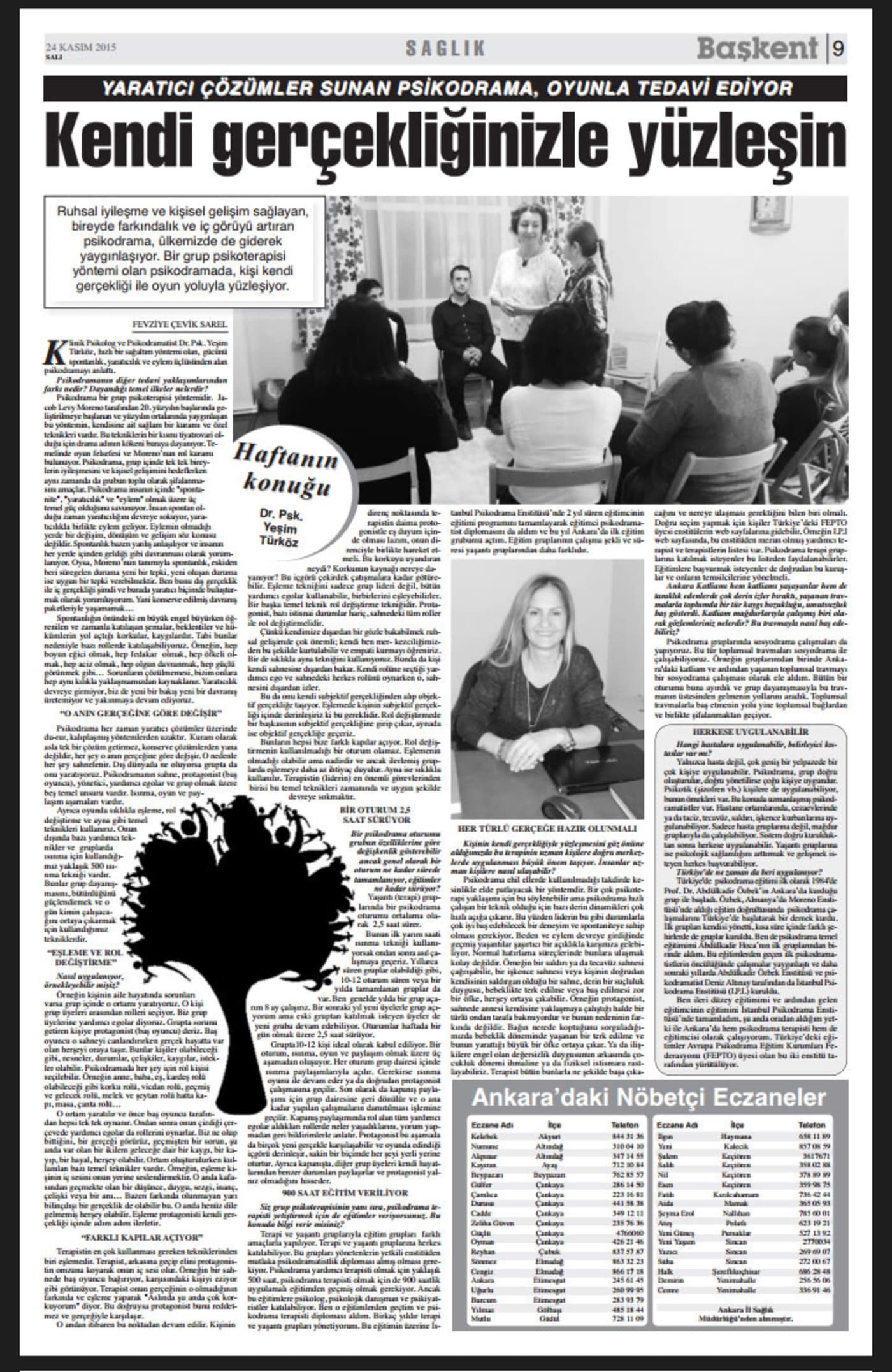 Klinik Psikolog ve Psikodramatist Dr. Psk. Yeşim Türköz, hızlı bir sağaltım yöntemi olan, gücünü spontanlık, yaratıcılık ve eylem üçlüsünden alan psikodramayı anlattı.
